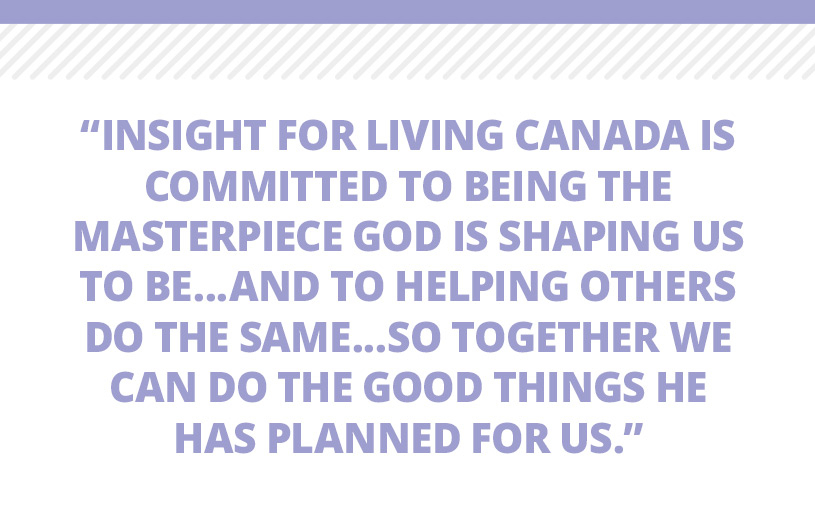 Insight for Living Canada is committed to being the masterpiece God is shaping us to be...and to helping others do the same...so together we can do the good things He has planned for us.